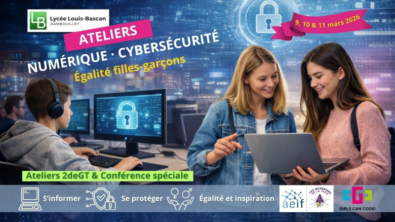 Les 9, 10 et 11 mars 2026, le lycée Louis-Bascan organise, en partenariat avec l’Association des enseignantes et enseignants d’informatique de France (AEIF), une série d’ateliers et deux conférences consacrés au numérique, à la cybersécurité et à l’égalité filles-garçons, à destination de l’ensemble des élèves de seconde générale et technologique (2deGT).