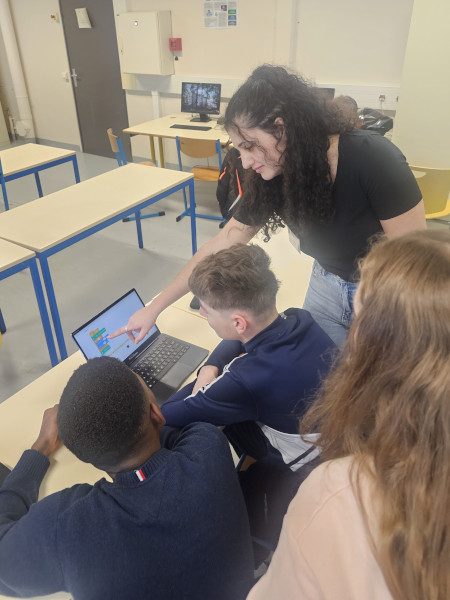 Pendant deux jours, sept élèves de terminale ayant choisi de suivre l’enseignement de spécialité NSI ont accompagné les garçons de seconde dans les défis.