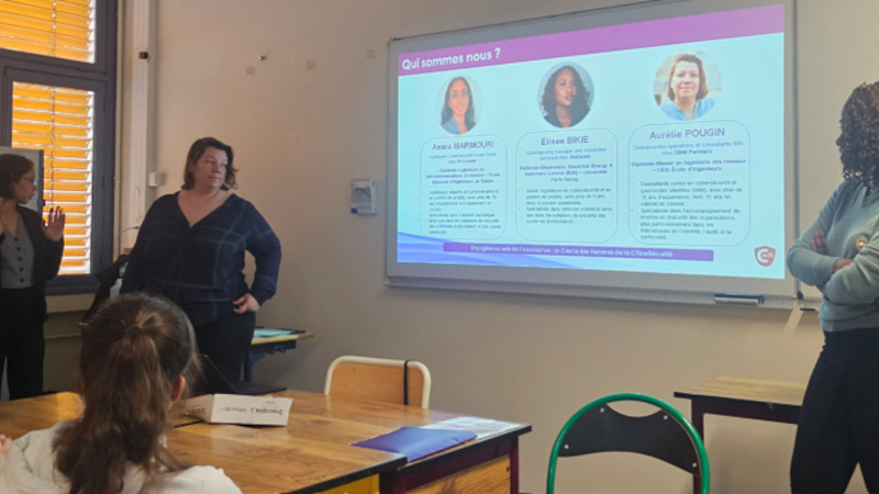 Après ces ateliers, deux conférences d’une heure ont été organisées pour une partie des élèves, en collaboration avec le Cercle des femmes de la cybersécurité (CEFCYS) et Women4Cyber France.