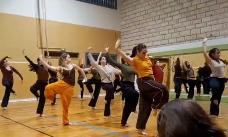 Dans l’extrait présenté par les élèves du lycée Louis-Bascan, les spectateurs ont pu percevoir la force du rapport à la Terre, l’énergie du groupe, la place de l’individu au sein du collectif, ainsi que l’impact de la musique percussive sur les corps en mouvement.