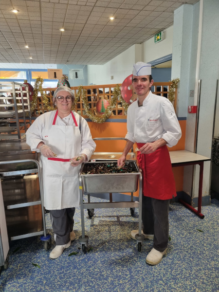 Pour célébrer Noël comme il se doit, les équipes du restaurant scolaire ont proposé un menu raffiné et festif, permettant à chacun de composer son repas selon ses envies.