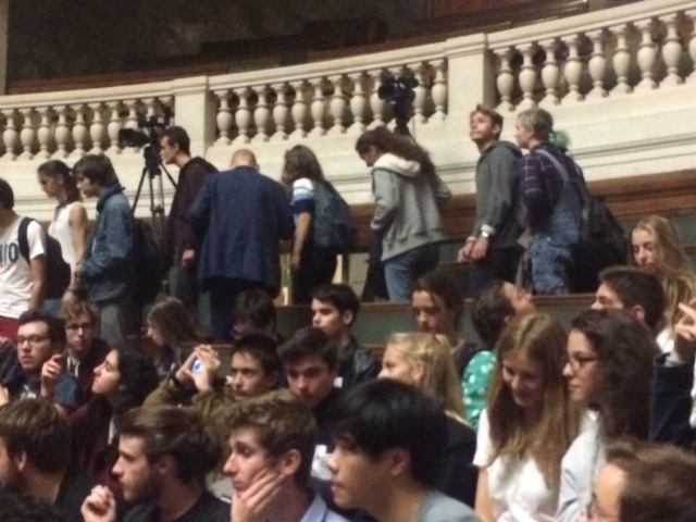 Mardi 16 octobre 17h30 départ du lycée Louis-Bascan en direction du cinquième arrondissement de Paris dans les gradins du Grand Amphithêatre de la Sorbonne.